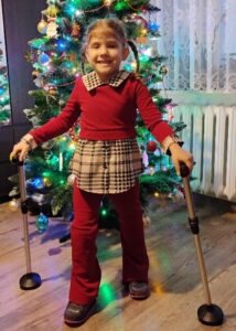 Kaja mimo swojej choroby i towarzyszących jej trudności jest bardzo pogodną i wesołą dziewczynką. Ma obecnie 6 lat i chodzi z pomocą kul i ortez wykonywanych na indywidualne potrzeby. Uczęszcza do szkoły integracyjnej do zerówki. Kaja bardzo by chciała jak najlepiej funkcjonować i bawić się z rówieśnikami oraz rodzeństwem w domu. Jednak ze względu na swoje ograniczenia wymaga specjalistycznej stymulacji rozwoju – głównie fizjoterapii (przy wsparciu specjalistycznego sprzętu rehabilitacyjnego i ortopedycznego), logopedii, integracji sensorycznej i terapii ręki. Jej największym marzeniem jest chodzić samodzielnie bez kul.